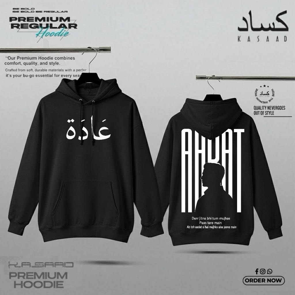 KASAAD ‘Aadat’ Premium Hoodie – Arabic Calligraphy & Urdu Lyrical Streetwear Edition