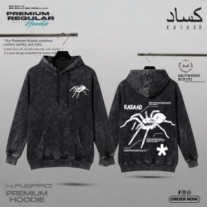 Arachnid’ Tech-Graphic Acid Wash Hoodie – Grunge Spider Diagram Streetwear Edition (Acid Wash)