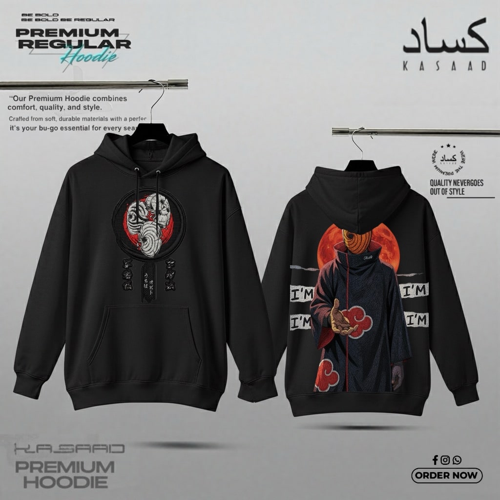 The KASAAD Obito Edition Hoodie tells the tragic story of the boy who wanted to be Hokage but became the world’s greatest threat. This piece is a streetwear tribute to the man behind the mask.
