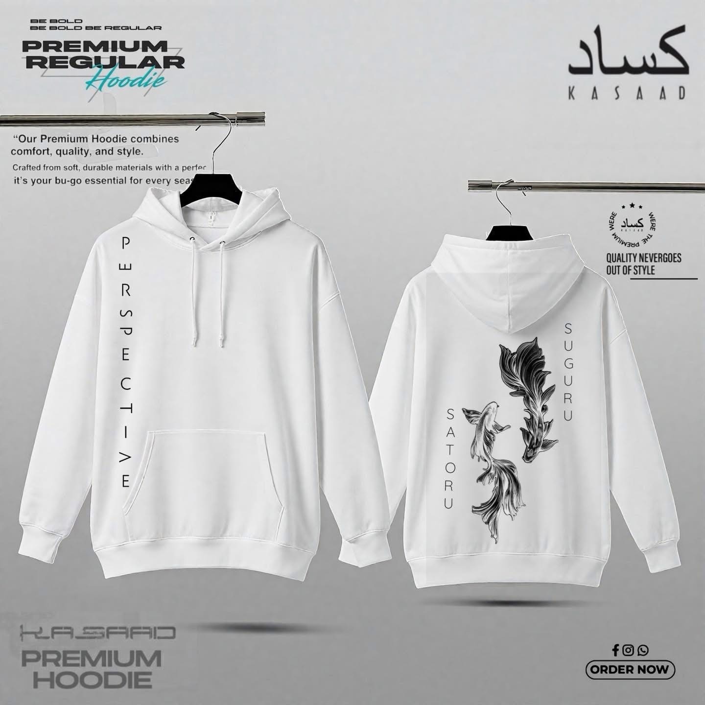 “We are the strongest.” Relive the days of blue youth with the KASAAD ‘Perspective’ Edition Hoodie. Featuring vertical typography on the front and a symbolic “Diverging Paths” Koi fish illustration on the back dedicated to Satoru and Suguru. A premium streetwear tribute to the duo who changed everything.